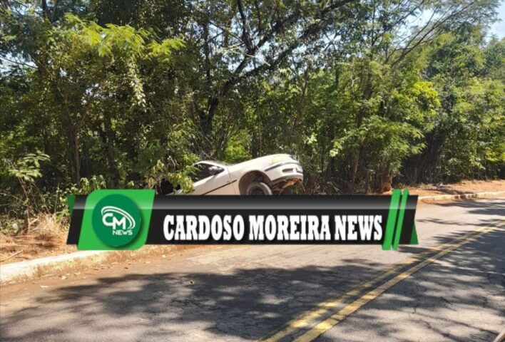 O carro ficou parcialmente pendurado na encosta, com as rodas dianteiras suspensas no ar após ultrapassar o limite do acostamento. Por sorte, a vegetação e o próprio relevo impediram que o automóvel despencasse morro abaixo, evitando o que poderia ter sido um acidente de proporções muito mais graves.
