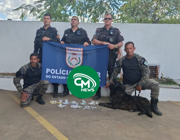 Uma ação conjunta realizada por policiais militares da 4ª Companhia e agentes da Guarda Civil Municipal (GCM) de Cardoso Moreira resultou na apreensão de entorpecentes no bairro São Caetano, em Italva. De acordo com informações obtidas, a operação foi desencadeada após denúncias que apontavam para a existência de drogas escondidas em áreas de mata, próximas ao cemitério local. Para intensificar as buscas, foi utilizado um cão farejador da GCM de Cardoso Moreira. Durante a varredura, o animal localizou 105 buchas de maconha e 15 pinos de cocaína, que estavam ocultos…